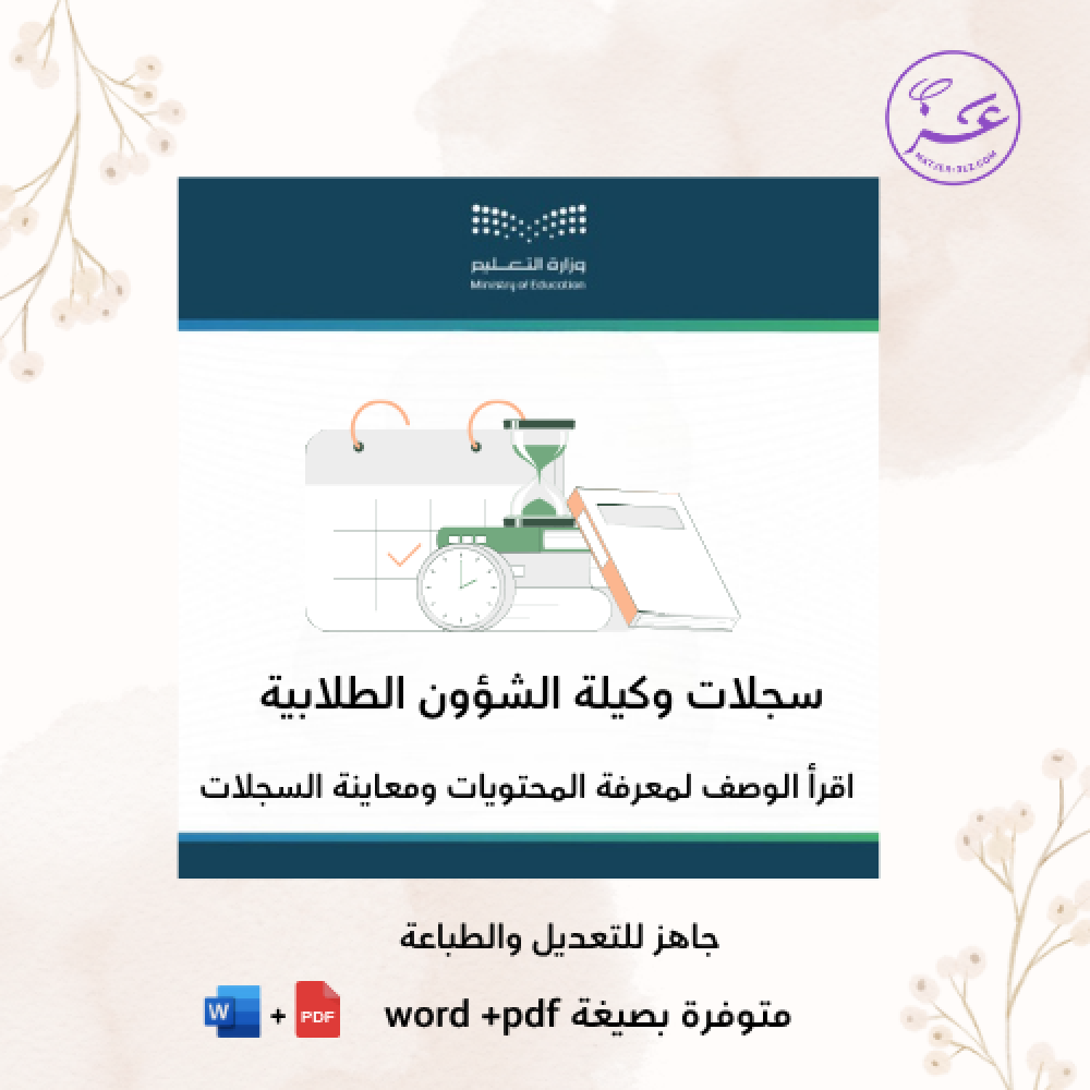 حزمة سجلات ونماذج إدارية متخصصة لتنظيم أعمال وكيلة الشؤون الطلابية داخل المدرسة، وفق النماذج الرسمية المعتمدة من وزارة التعليم، لضمان انسيابية العمل ودقة التوثيق.