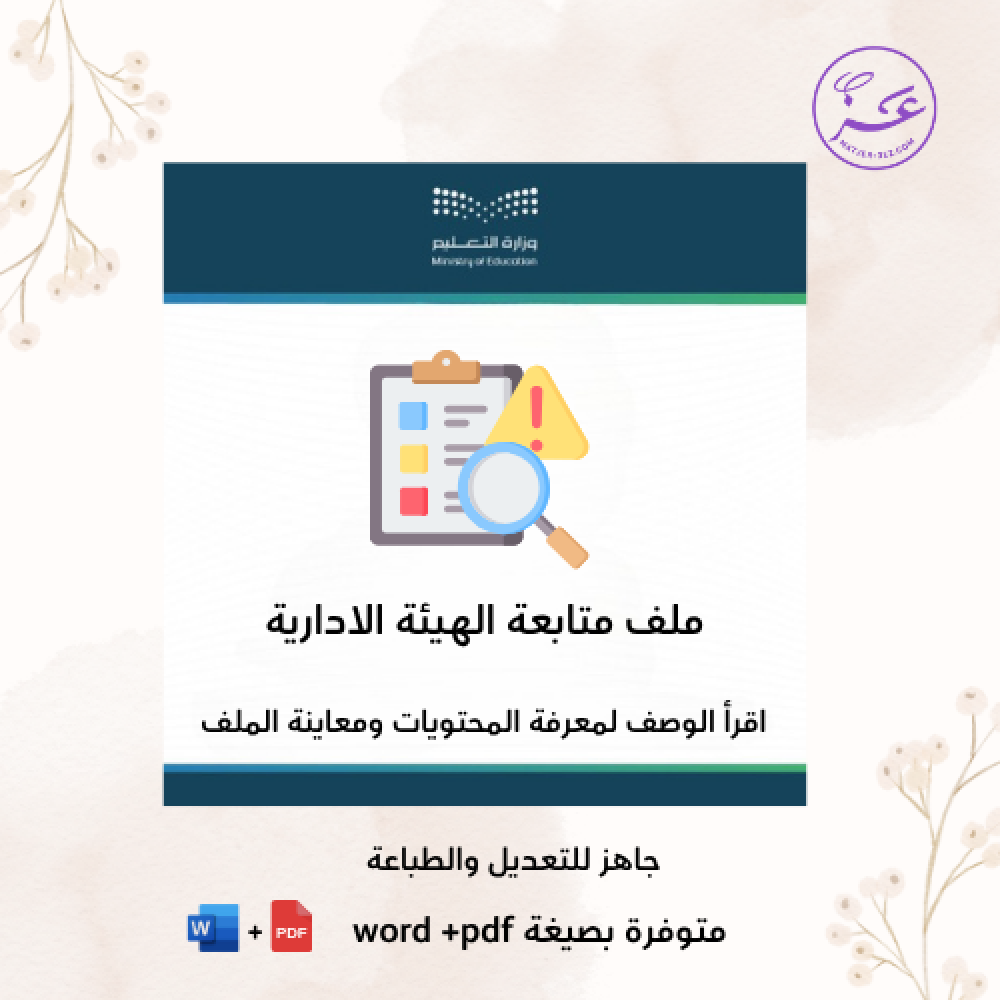 حزمة من السجلات والنماذج الإدارية لمتابعة أداء وانضباط الهيئة الإدارية في المدرسة، بهدف رفع كفاءة العمل الإداري وضمان الالتزام بالمهام والمسؤوليات اليومية.